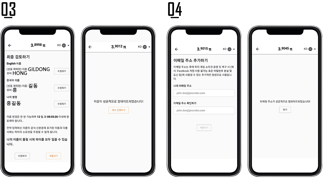 - ์ด๋ฆ๊ณผ ์ฑ์ ์ฌ๊ถ์ ํ๊ธฐ๋ ์๋ฌธ์ผ๋ก ์ ๋ ฅํฉ๋๋ค. ํฅํ์ ํ์ด์ฝ์ธ(Pi)์ ์์ ๊ถ ์ธ์ฆ์ ์ฌ๊ถ์ ์ฌ์ฉํ ์ ์์ต๋๋ค.